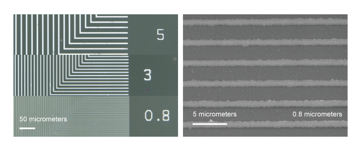 Mit einem so feinen Drahtmuster wie diesem diffraktiert sichtbares Licht, wodurch die Lichtwellen sich um die Rückseite des Musters wickeln und es fast transparent erscheinen lassen. Verschiedene Muster wurden vorbereitet, und die Lichtdurchlässigkeit wurde gemessen, während ihre elektrischen Widerstände verändert wurden. Die Ergebnisse zeigten, dass dieses Muster eine Transparenz aufwies, die mit den besten in der Literatur verfügbaren Werten vergleichbar war.
