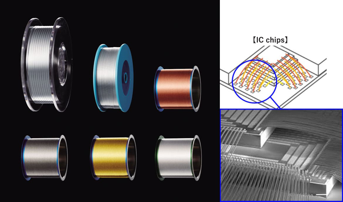 Bonding-Draht ist ein leitfähiger Draht, der die Elektroden auf Halbleiterchips mit Gehäusen und Anschlussrahmen verbindet. Golddraht wurde seit den Anfängen der Halbleiterindustrie hauptsächlich verwendet, aber gegenwärtig wird, mit Ausnahme einiger Multilayer-Speicher- und Automobilgehäuse, Kupferdraht mit Palladiumbeschichtung verwendet. In den letzten Jahren haben unter den fortschrittlichen Chips Montagesysteme, die nicht auf Wire Bonding basieren, wie Bumps, begonnen, verwendet zu werden; jedoch wird Wire Bonding nach wie vor weit verbreitet eingesetzt, insbesondere für Produkte mit allgemeinem Verwendungszweck. Die Nachfrage nach Drähten wächst weiterhin mit einer Rate von mehreren Prozent pro Jahr.
