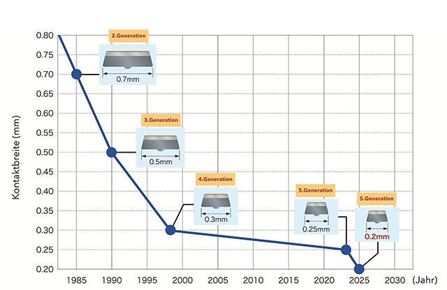 Eine Kontaktbreite von nur 0,2 mm ermöglicht kleinere Relais ohne Prellen und Rattern