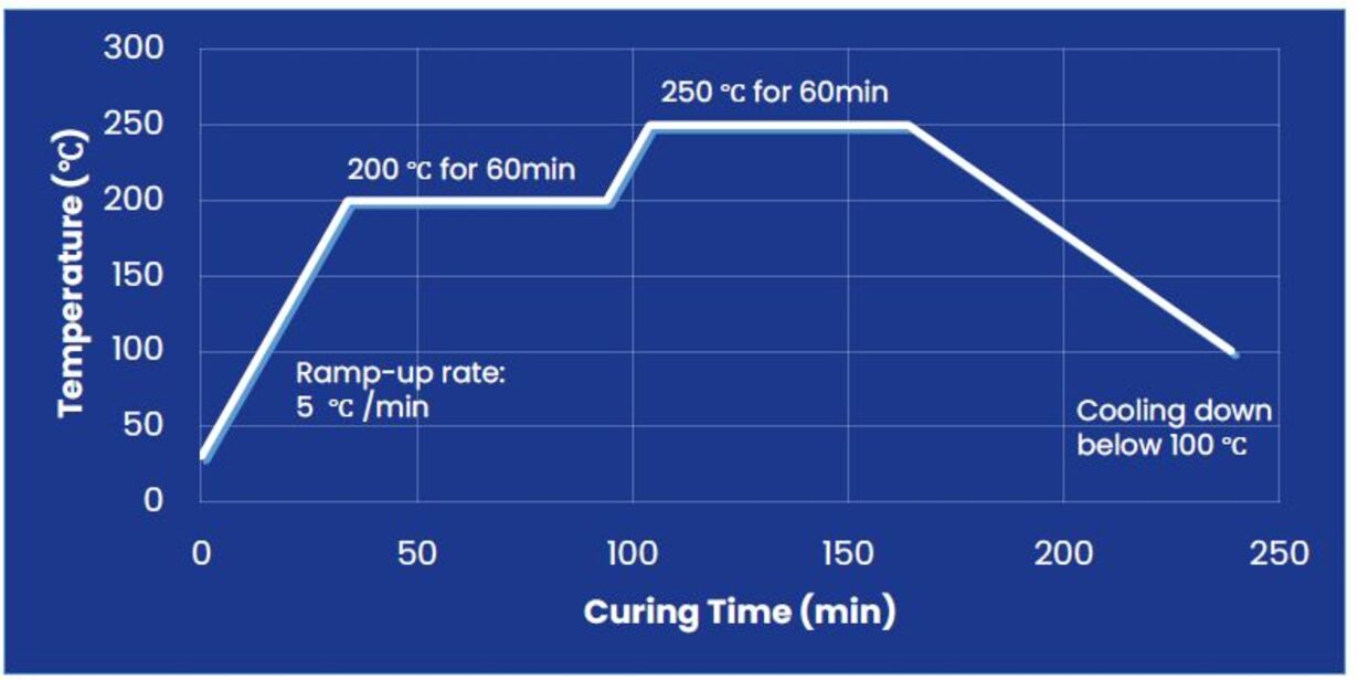 Figure 3 shows the recommended hardening profile optimized for bare copper. This profile is also suitable for silver and gold. For silver and gold, reliable bonding can be achieved even at low temperatures of around 200°C.