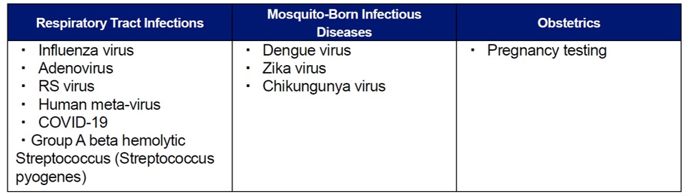 TANAKA offers in vitro diagnostics for a wide range of infectious diseases including respiratory tract infections, such as influenza and COVID-19, as well as dengue and ZIKA viruses. These test kits are compatible with various sample types such as saliva, blood, and urine, and support rapid and accurate testing in clinical settings.