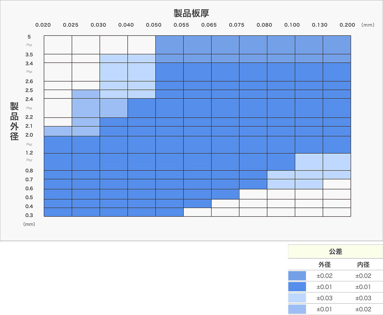 Outer diameter: 0.3 to 5.0 mm