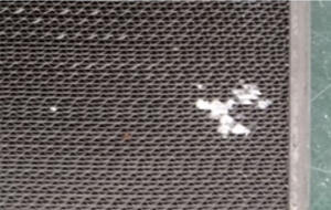 | Thermal degradation | Exposure to high temperatures (600℃ or higher) and other conditions can cause fine Pt particles to agglomerate, resulting in a decrease in active sites and catalyst degradation. In addition, exposure to temperatures of 1,000℃ or higher may cause deformation of the metal honeycomb, which could lead to cell blockage and gaps and a decline in performance. |