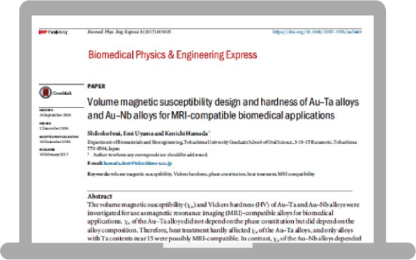 Inui S, Uyama E, Hamada K. Volume magnetic susceptibility design and hardness of Au–Ta alloys and Au–Nb alloys for MRI-compatible biomedical applications. Biomedical Physics & Engineering Express. 2017
