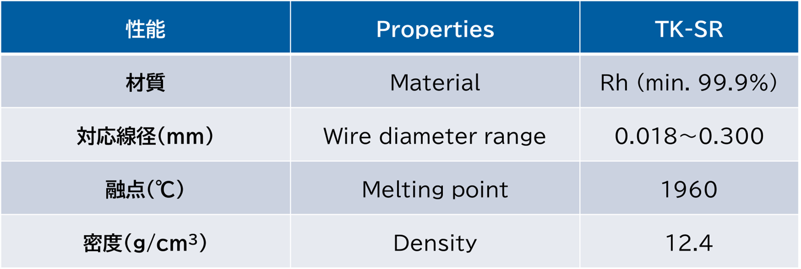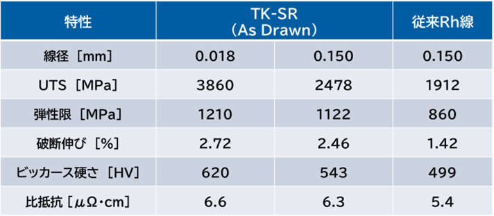 【「TK-SR」と従来Rh線との特性比較】
