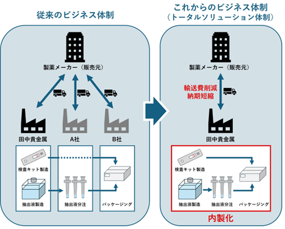 田中貴金属の産業用貴金属事業を展開する田中貴金属工業株式会社は、体外診断薬をはじめとする各種検査キットの受託製造事業において、全工程を一括で対応できるトータルソリューション体制を確立したことを発表します。