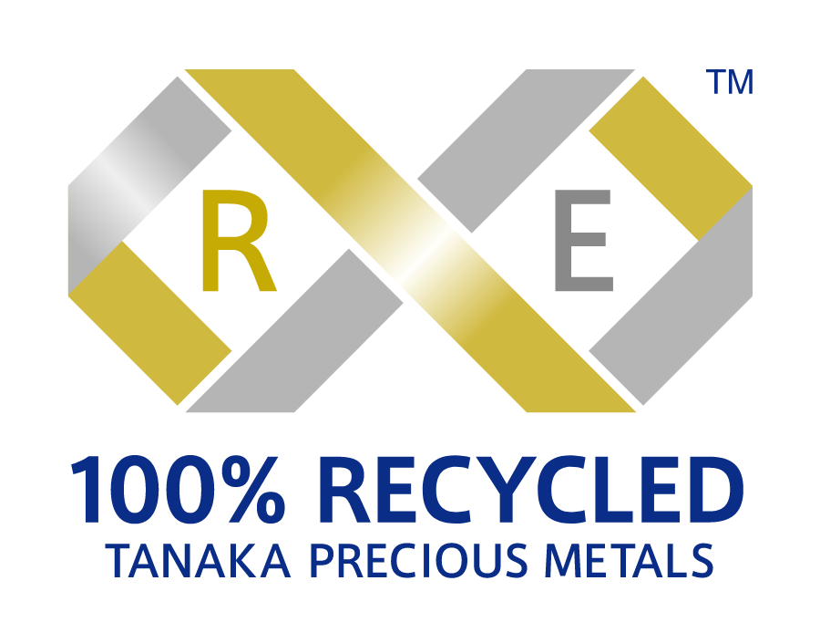 新たな貴金属の採掘を抑えることで、環境への負荷軽減と持続可能で効率的な利用を実現するために田中貴金属が新たに開発した「REシリーズ」製品。その最大の特徴は 、田中貴金属が長年培った高度なリサイクル技術や、貴金属分析技術を用いて「100%」貴金属リサイクル材のみを精製利用した、再生貴金属材であることです。