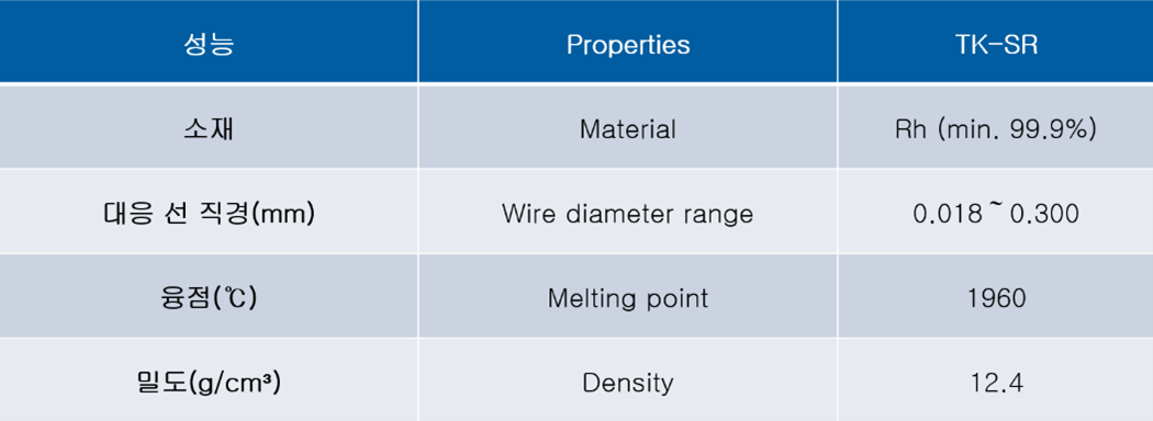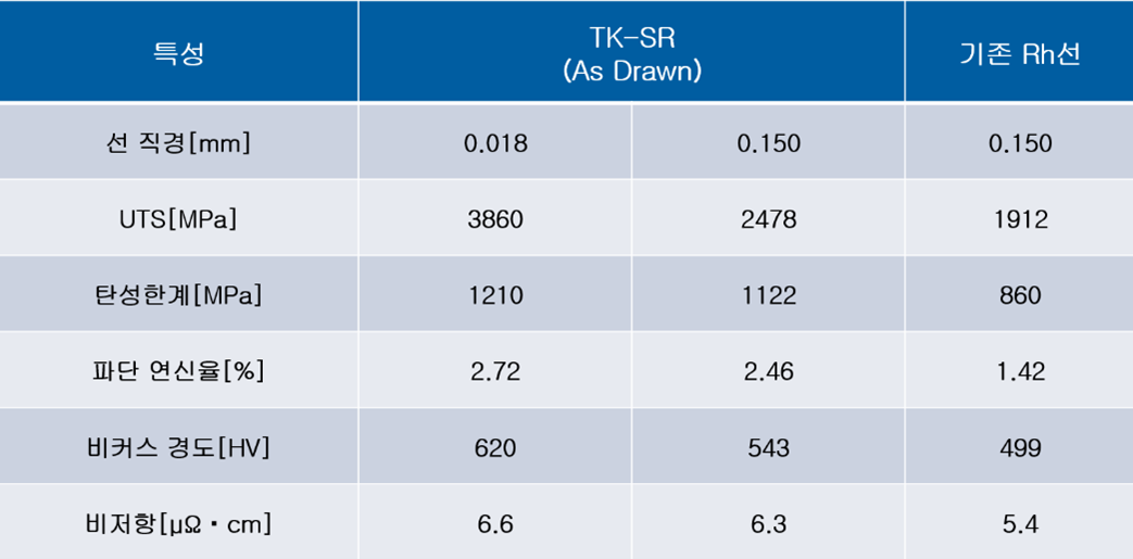 ['TK-SR' 및 기존 Rh선 특성 비교]
