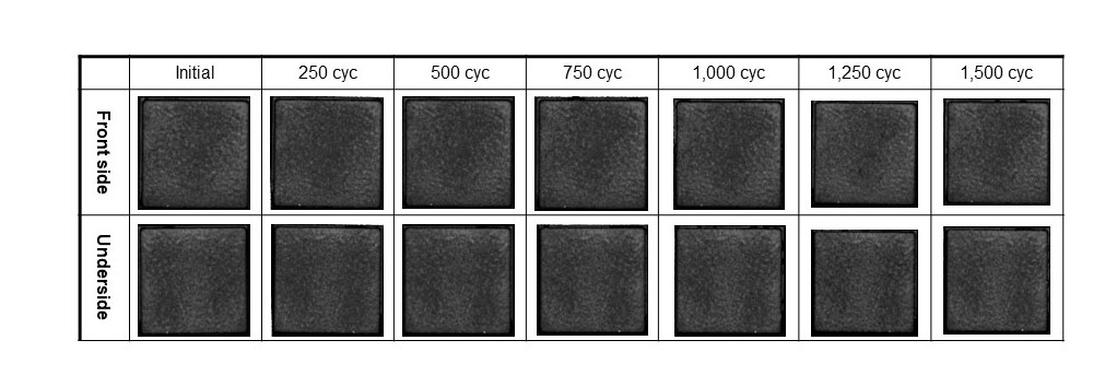 釬焊後、熱循環測試前,未發現空隙或剝落,證實銅和陶瓷在整個表面牢固結合。此外,即使測試進行到250次和500次循環,乃至1500次循環後,此狀態均未發生變化。這證明該基材具有足夠的抗熱衝擊性能,並且採用活性金屬焊料銅複合材料製造的陶瓷基板具有較高的抗熱衝擊可靠性。