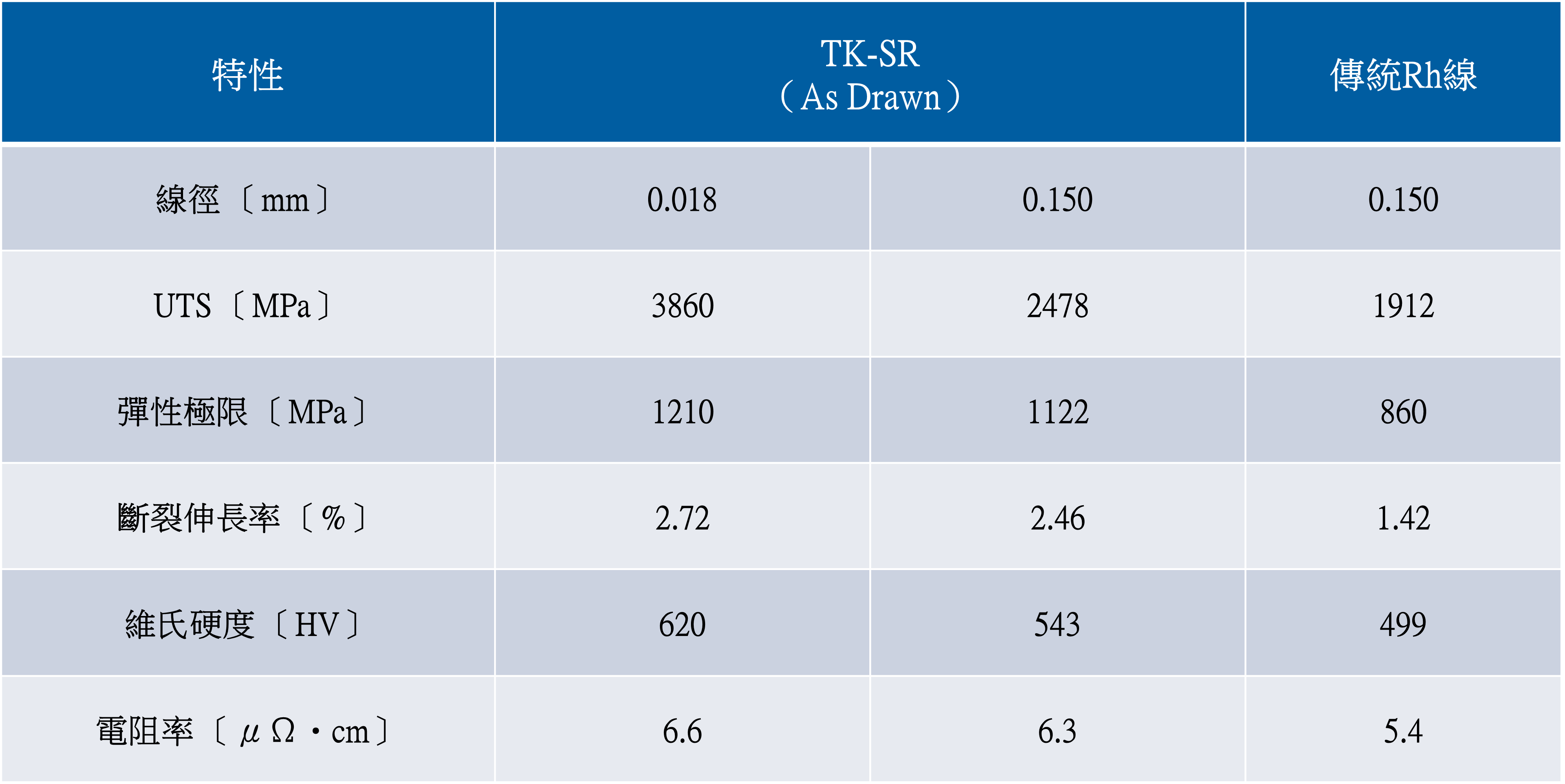 【「TK-SR」與傳統Rh線的特性比較】